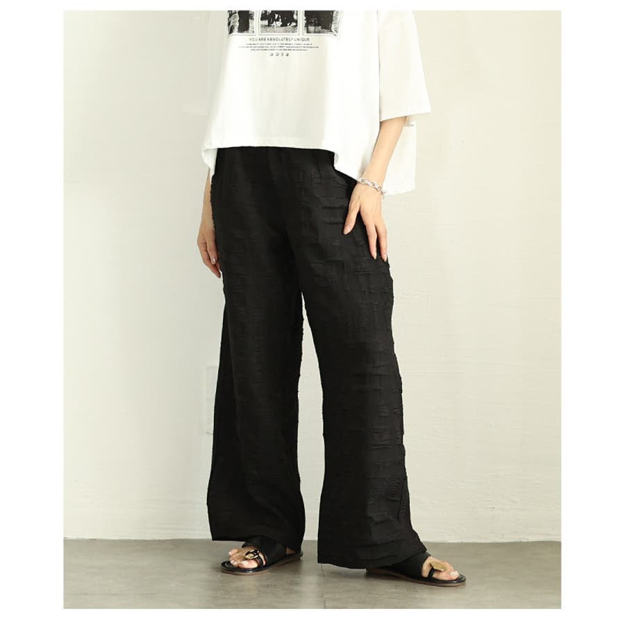 ラフに見せないきれい見えジャガードセミワイドパンツ レディース ファッション