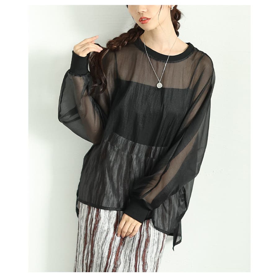 旬な着こなしで大人の肌見せ叶うシアーロングスリーブカットソー レディース ファッ…