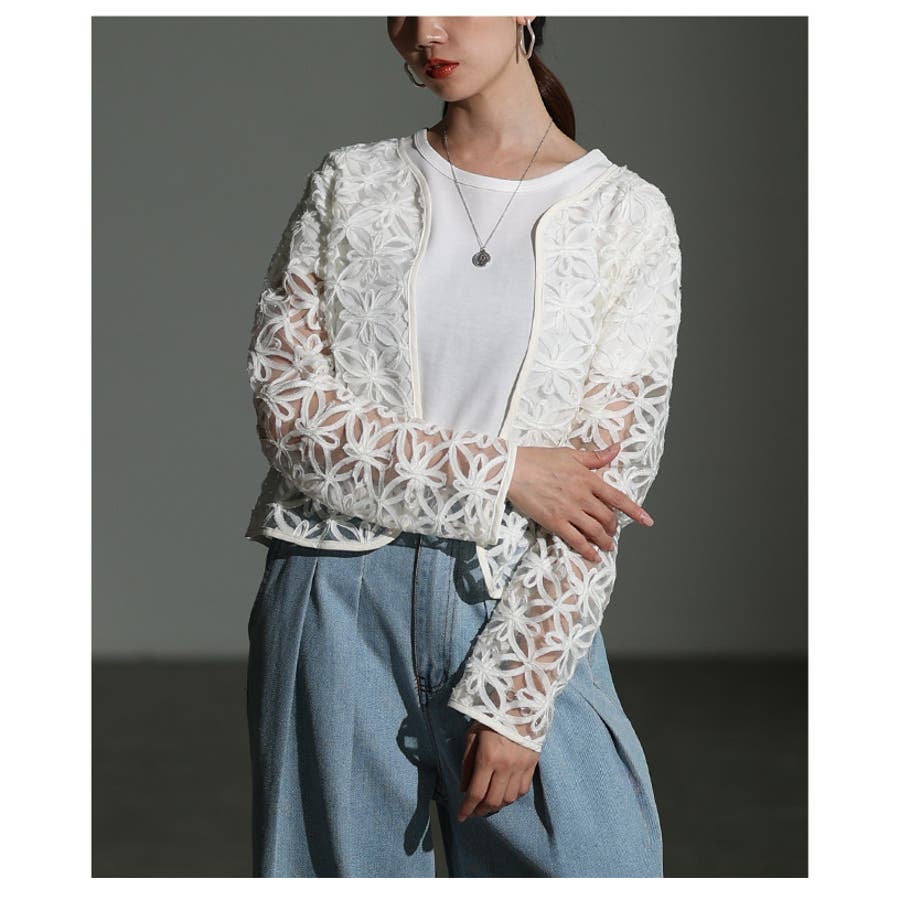 媚びない大人のコードレースノーカラージャケット レディース ファッション