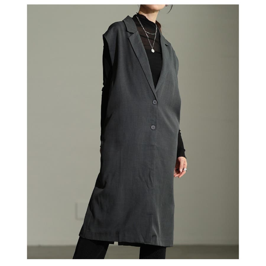 使い勝手の良いロングジレです。いつものコーデにプラスしたりと単品使いは勿論、「almam-199061」のジャケットとセットでご着用いただくとありそうでなかったモードスタイルが完成します☆