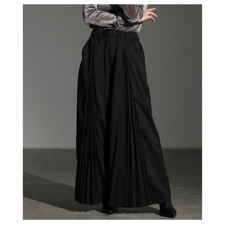 足下をエレガントに彩るプリーツ切替ワイドパンツ レディース ファッション