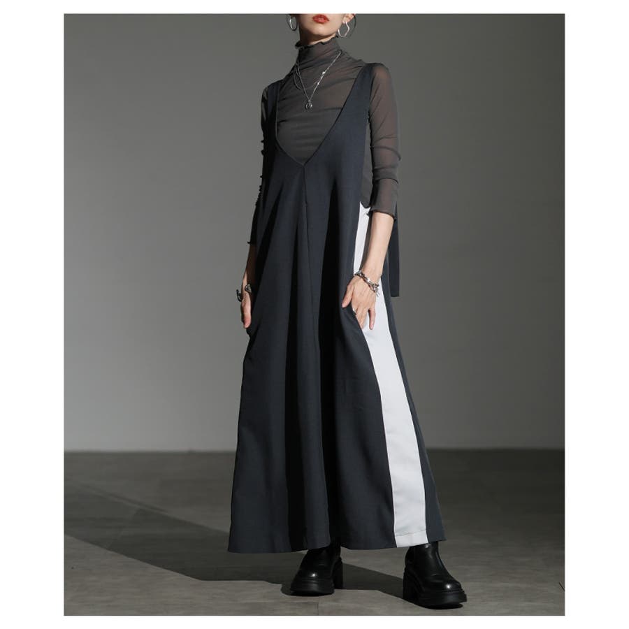 着るだけでスタイルアップするサイドラインサロペットスカート レディース