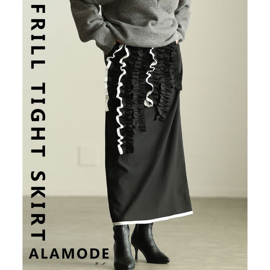 流れるフリルで魅せるフリルラインタイトスカート レディース ボトムス