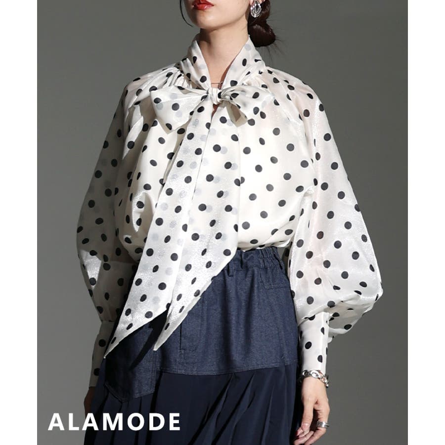 一枚で品格が完成するクラシカルドットボウタイブラウス レディース トップス