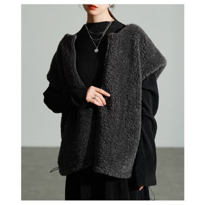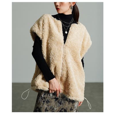 柔らかく高級感のあるボア、フロントジップでモードな印象に。