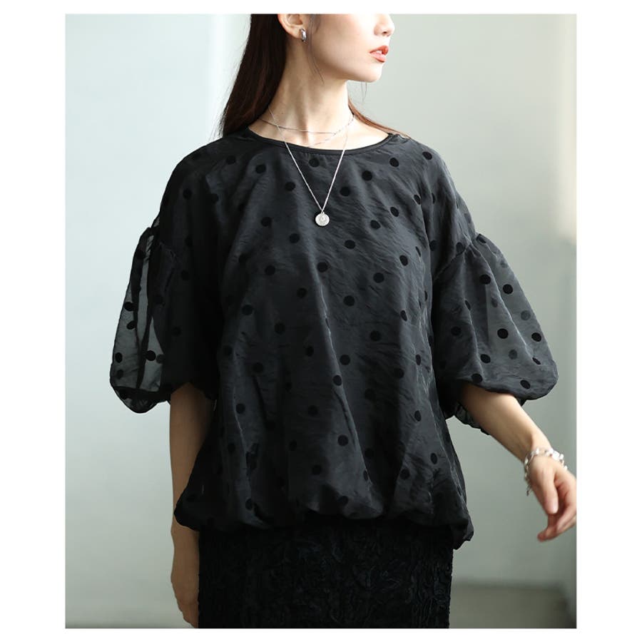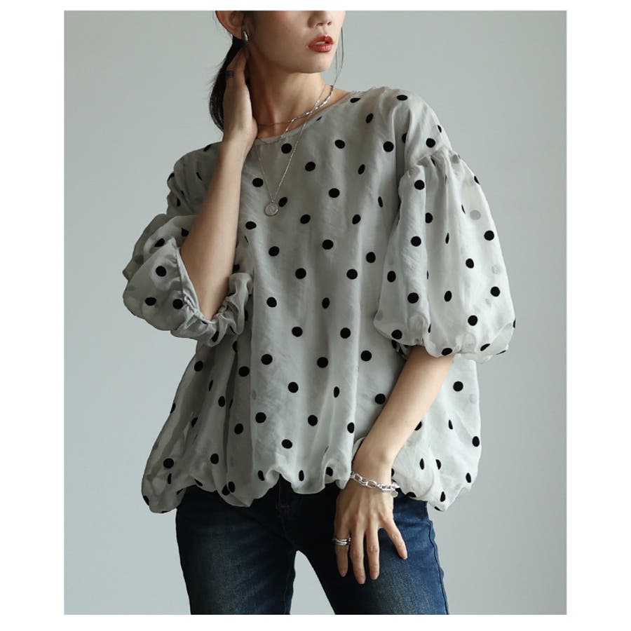 夢見心地なフロッキードットオーガンジーバルーントップス レディース ファッション