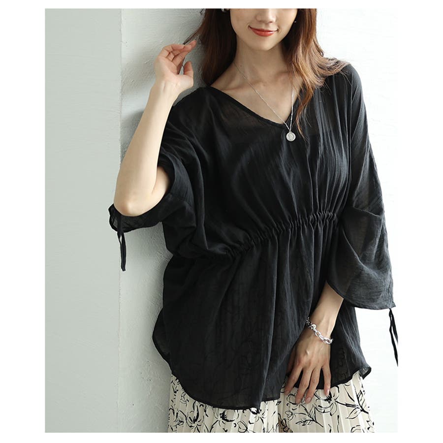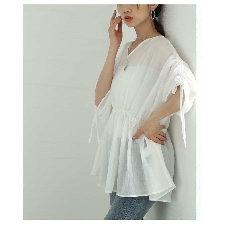 夏風感じるゆったり華奢見えなドロストペプラムブラウス レディース ファッション