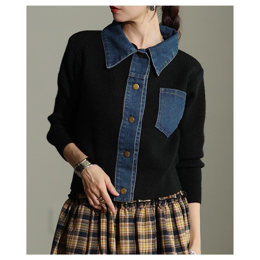ニットの身頃にデニムの襟や前立てがドッキングしたアイテム。人気の高いニットとデニムの組み合わせはこの秋冬活躍すること間違いなし!