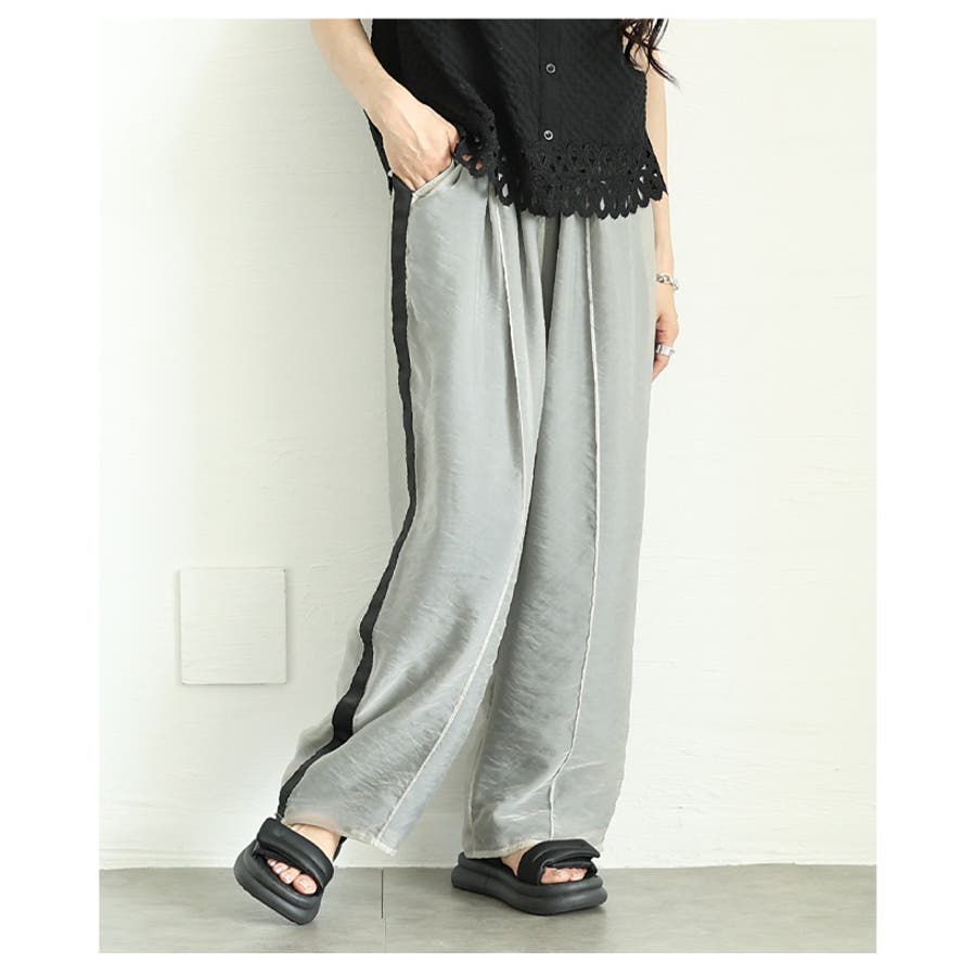 オーガンジーレイヤードサイドラインロングパンツ レディース ファッション