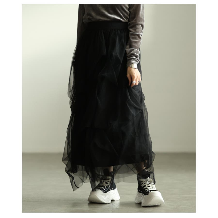 ランダムタックで表情豊か、オーガンジー生地がコーデに軽やかな動きをプラスしてくれるスカートの登場です。