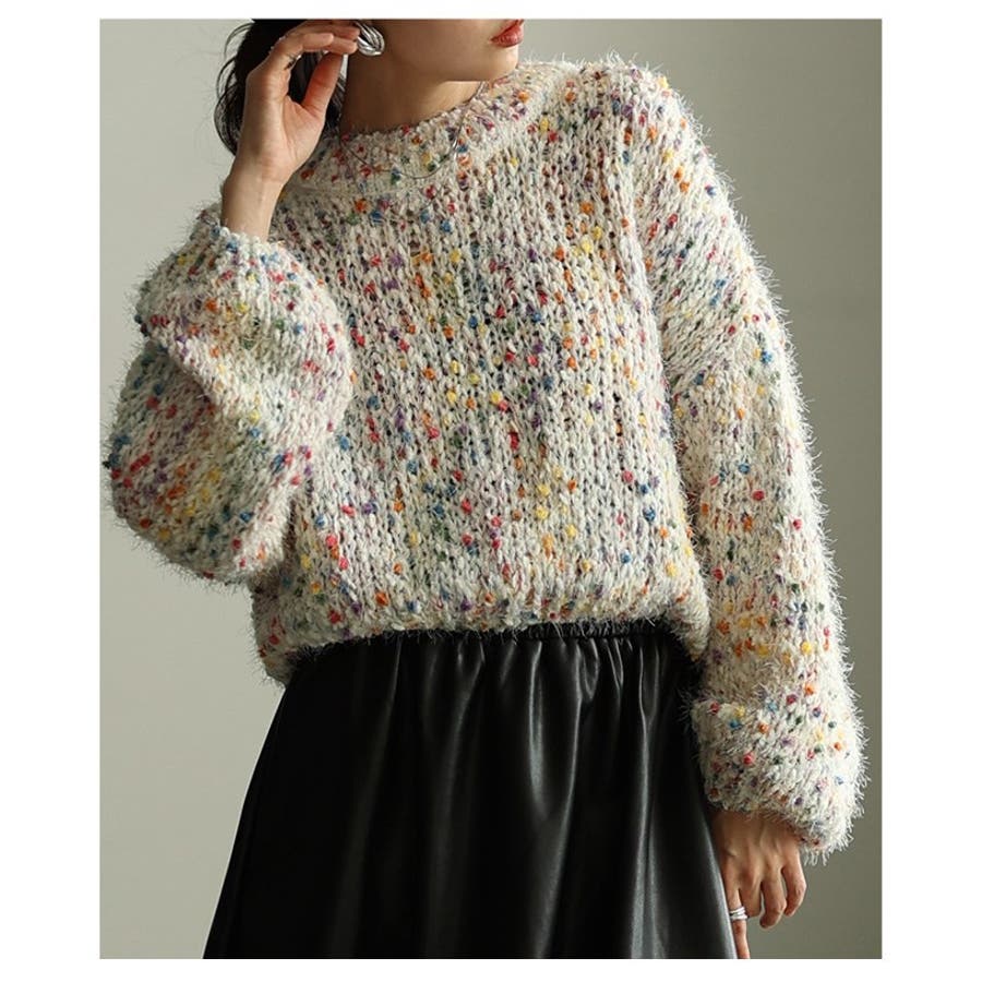 特徴: カラフル ネップ シャギー MIXニット ボリューム袖 ローゲージ