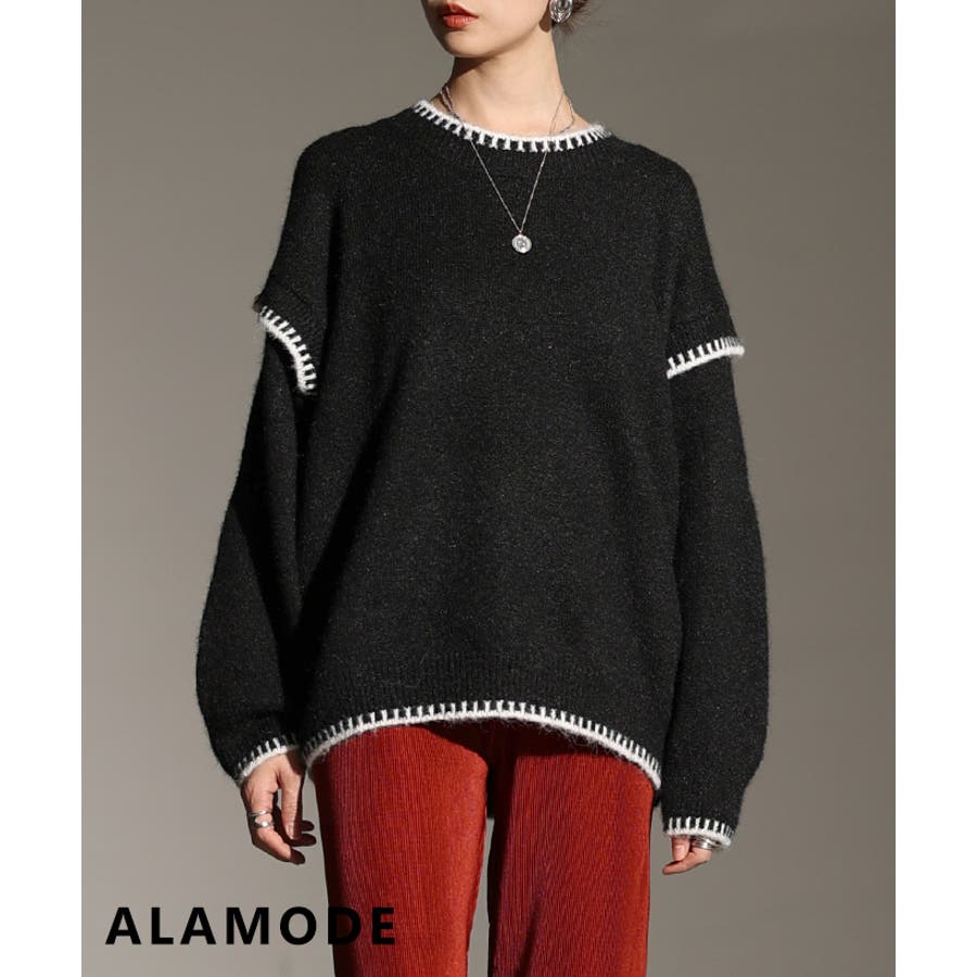 一枚で洒落るゆったりステッチニットトップス レディース ファッション