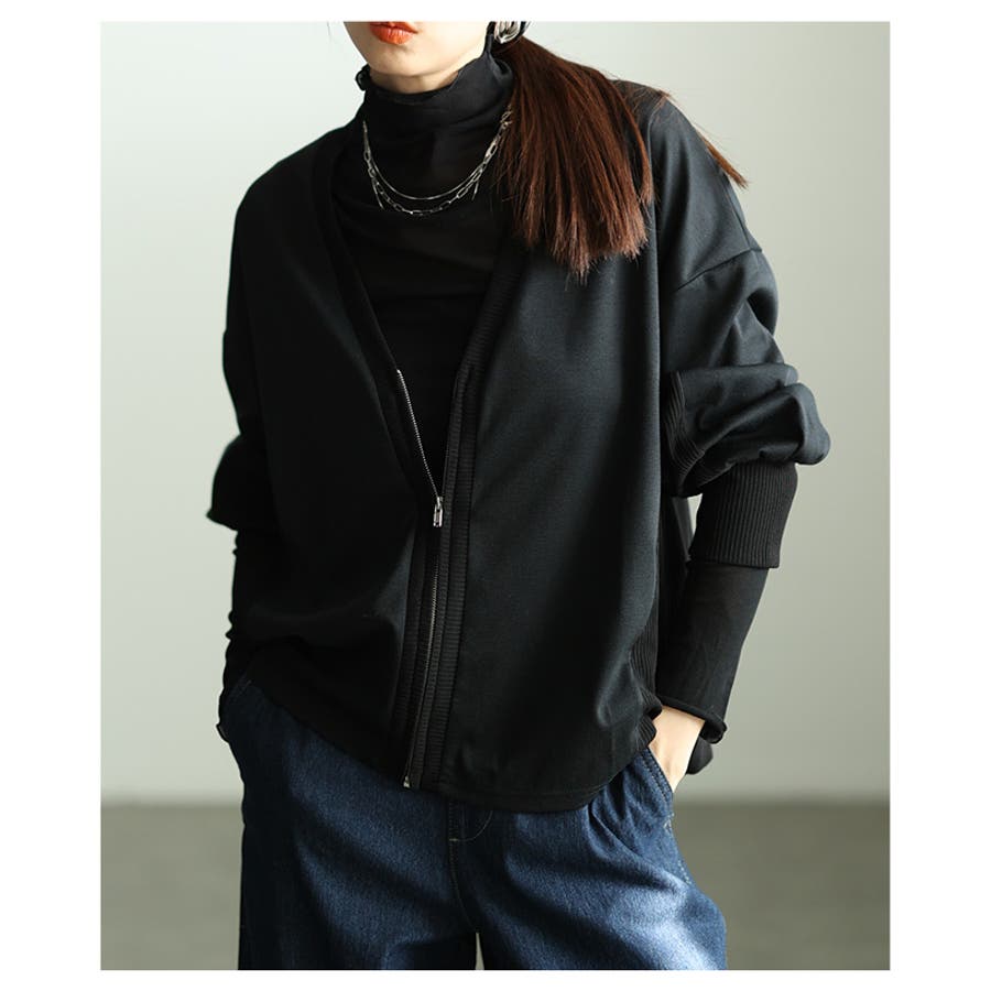 気負わず羽織れるドッキングジップアップカーディガン レディース ファッション