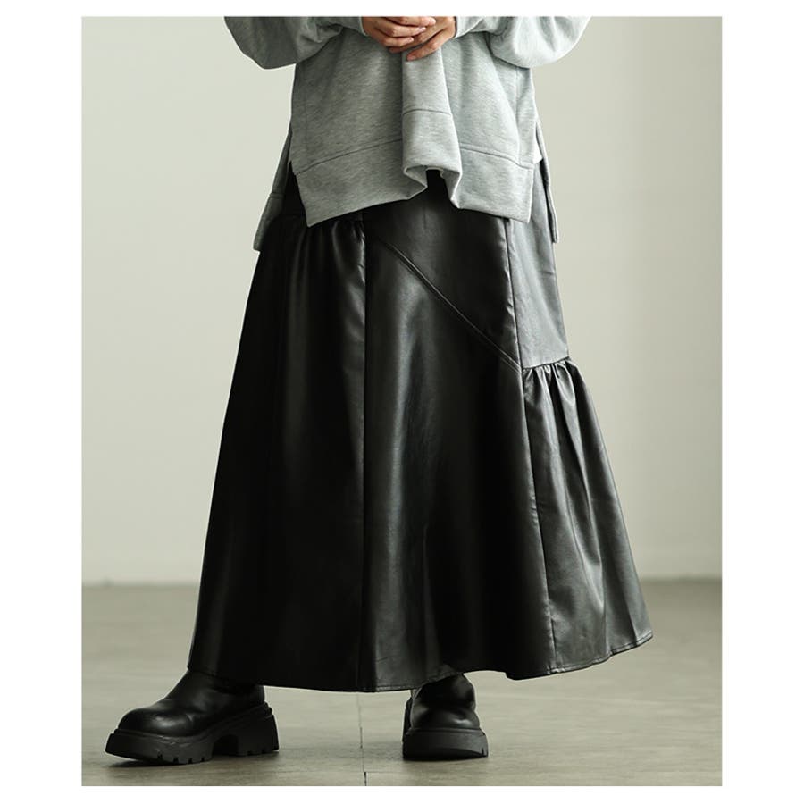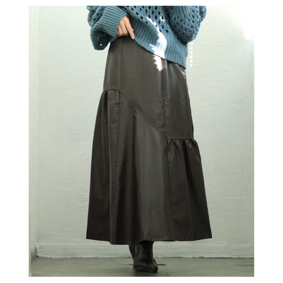 動きに差がつくアシンメトリーフェイクレザーフレアスカート レディース ファッション