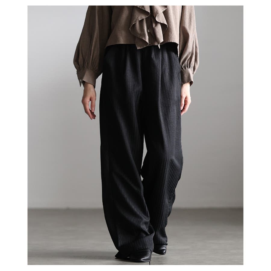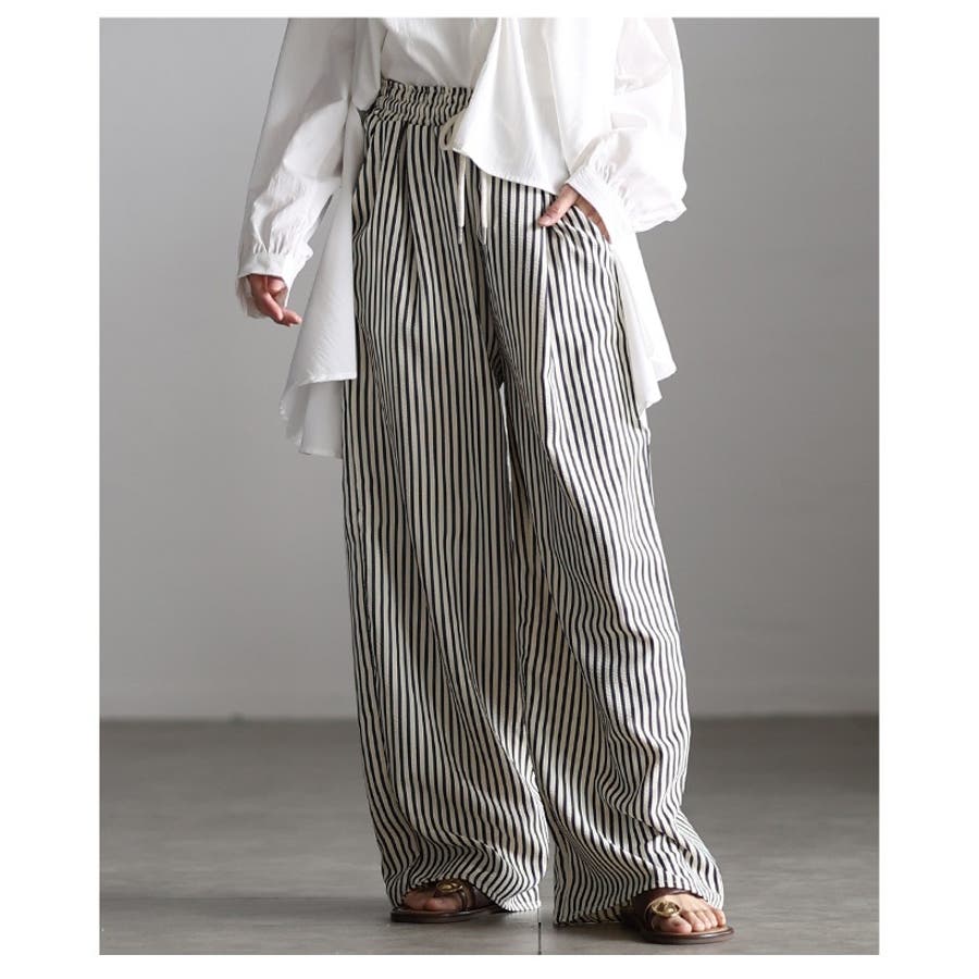 都会的こなれ感纏うストライプ柄イージーワイドパンツ レディース ファッション