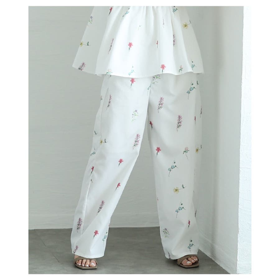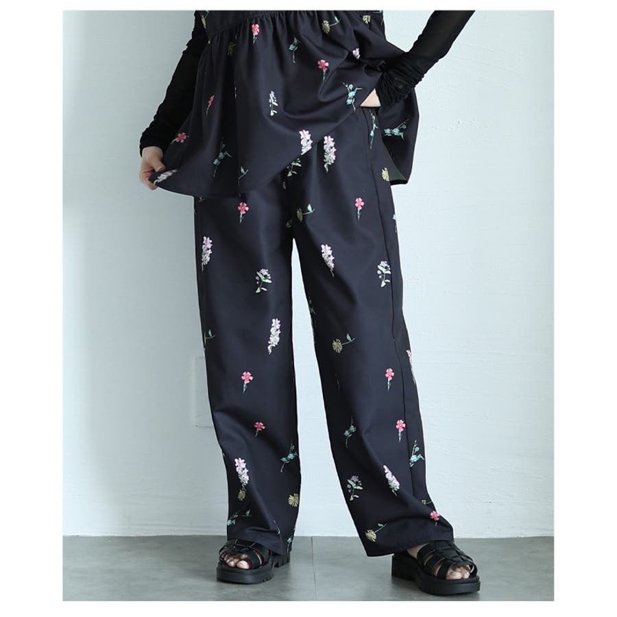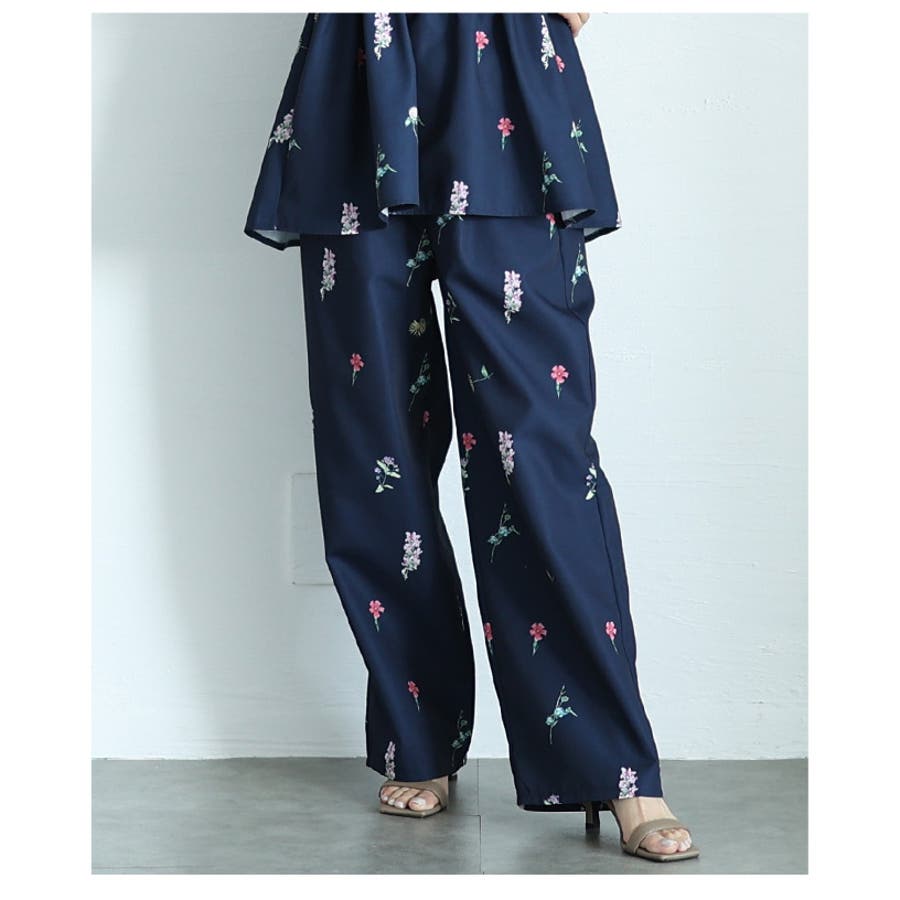 爽やかな甘さ引き立つ花柄セミワイドストレートパンツ レディース ファッション