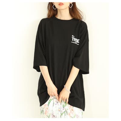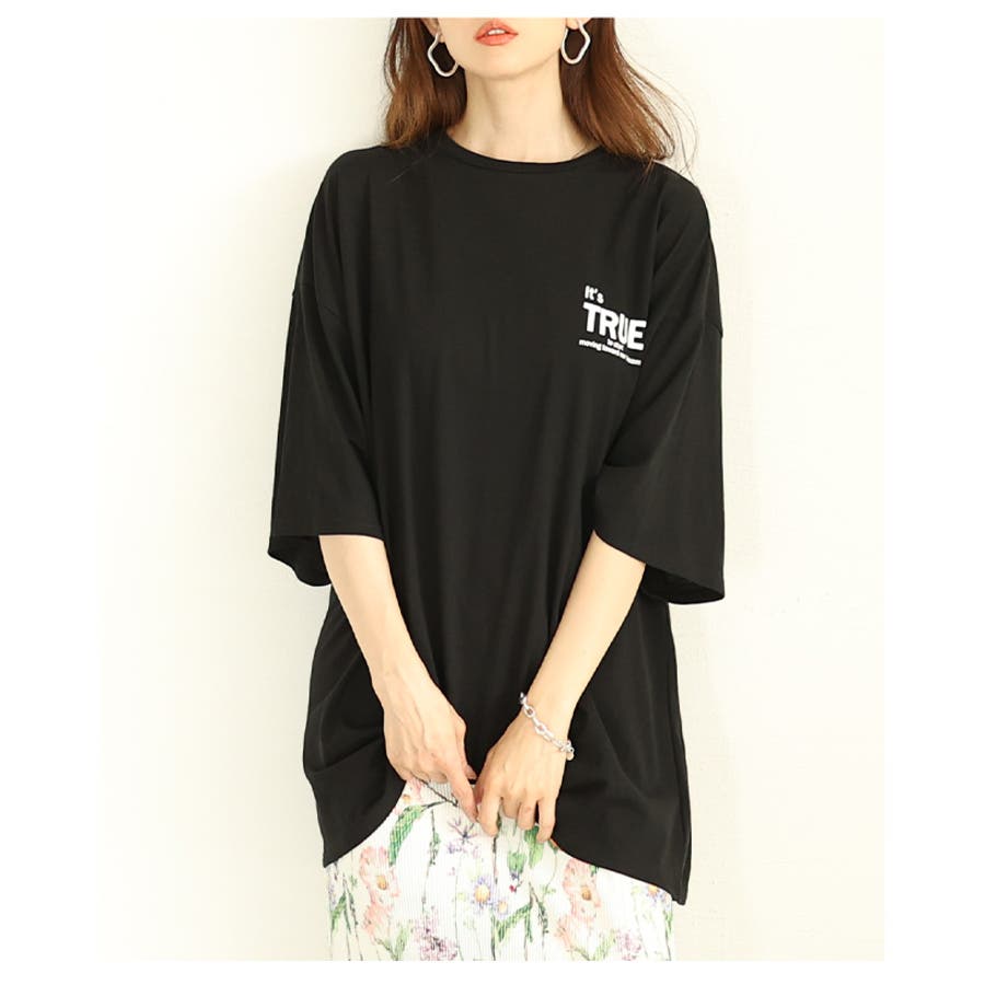 後ろ姿も抜かりない大人のロゴプリントオーバーTシャツ レディース ファッション