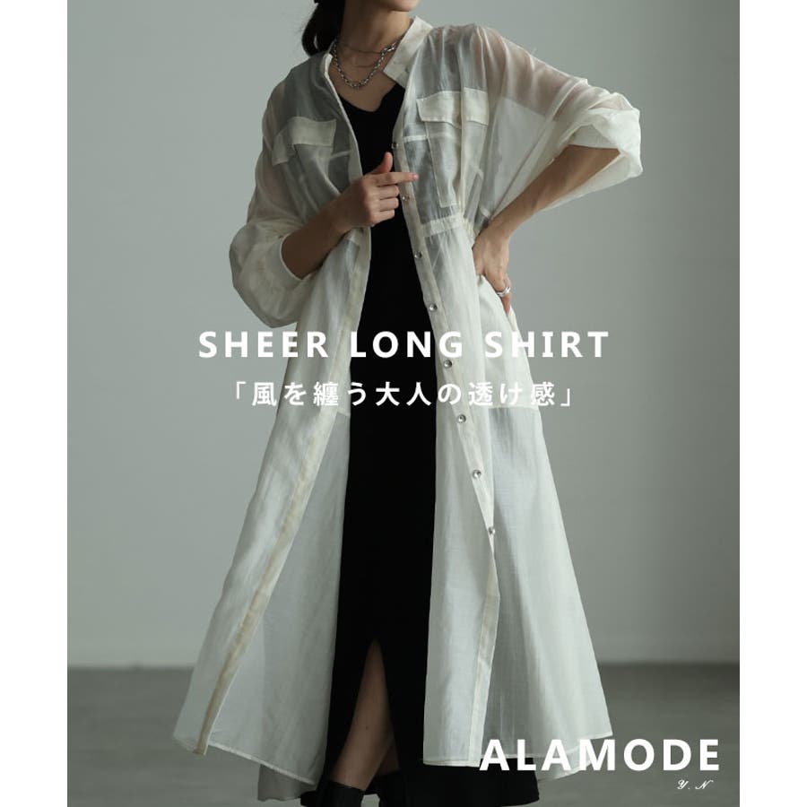 軽やかな風をはらむウエストドロストシアーロングシャツ レディース ファッション