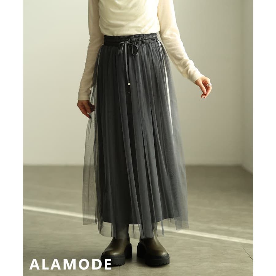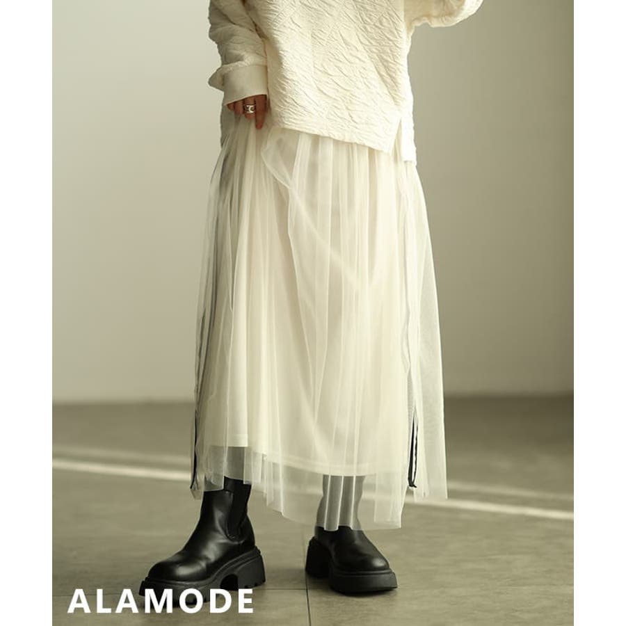 甘さ控えめ大人のサイドラインチュールフレアスカート レディース スカート