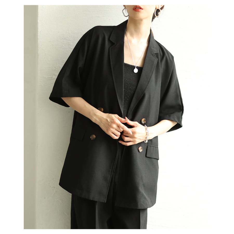 ゆったりとしたオーバーサイズシルエットが、トレンドライクな抜け感を演出。かっちりしすぎず、ラフに羽織れるから、普段使いからオフィススタイルまで幅広いシーンで活躍します。肩を落として着るドロップショルダーデザインと、肘まである五分袖が、こなれた印象を与えつつ、気になる二の腕を自然にカバー。インナーを問わずレイヤードしやすいのも魅力です。