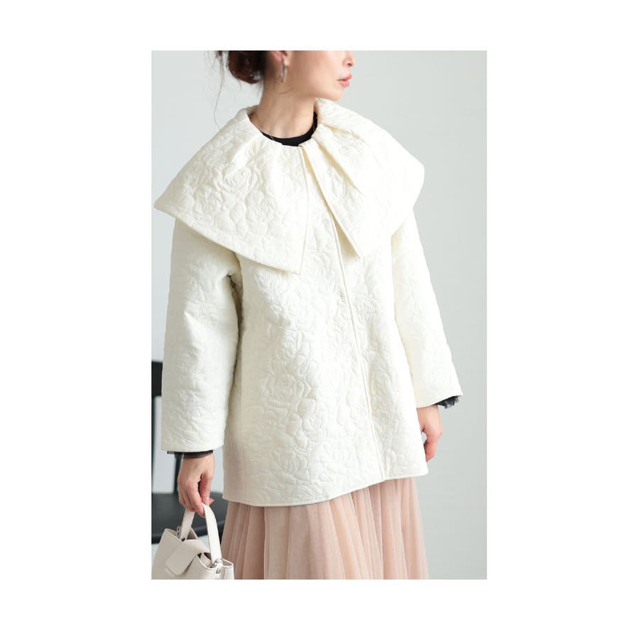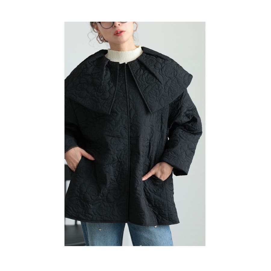ぽこぽこ浮き出るバラ模様のビックカラーキルティングジャケット レディース ファッ…