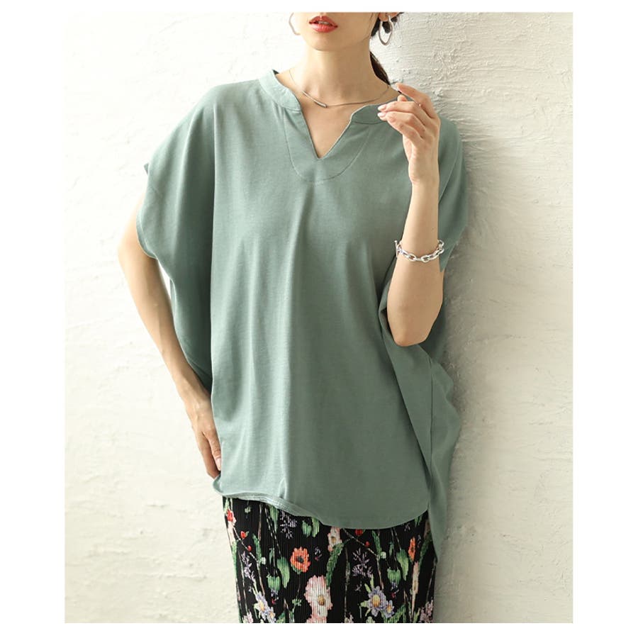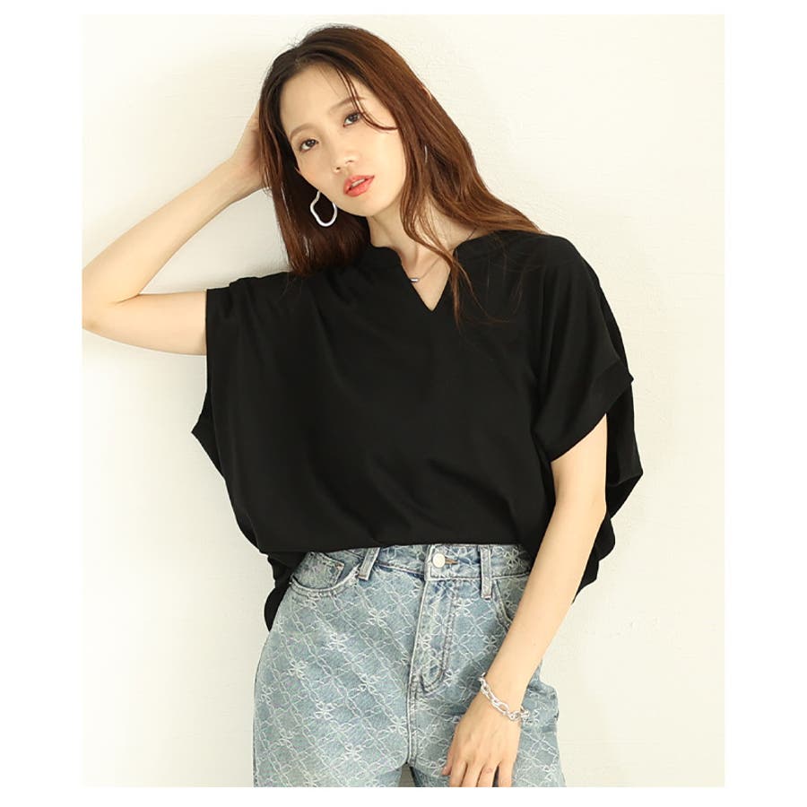 リラクシーな抜け感纏うキーネックドルマンカットソー レディース ファッション