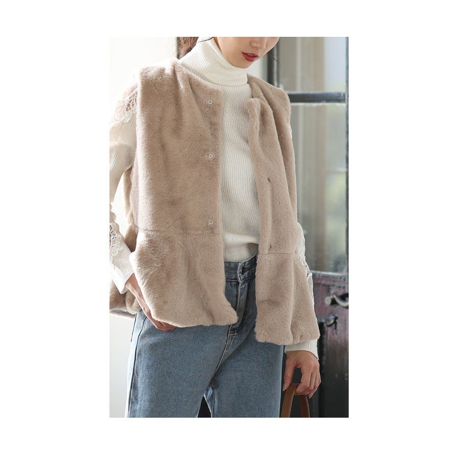 ずっと触れていたくなるフェイクファーペプラムベスト レディース ファッション
