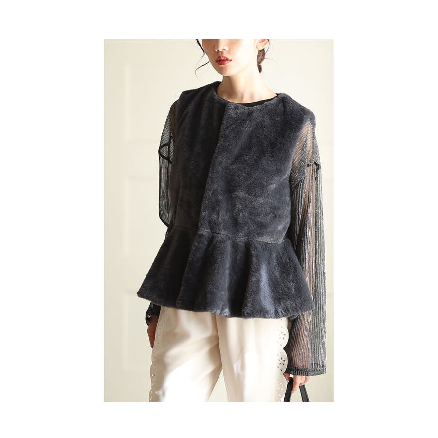 ずっと触れていたくなるフェイクファーペプラムベスト。