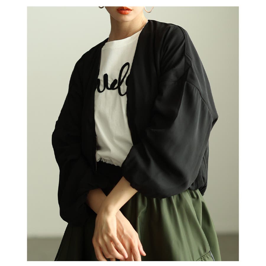 空気を纏う軽やかなボリューム袖ショートライトブルゾン レディース ファッション
