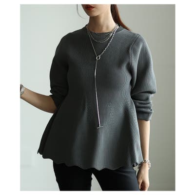 特徴: ペプラム スカラップ クルーネック リブ スポンジニット