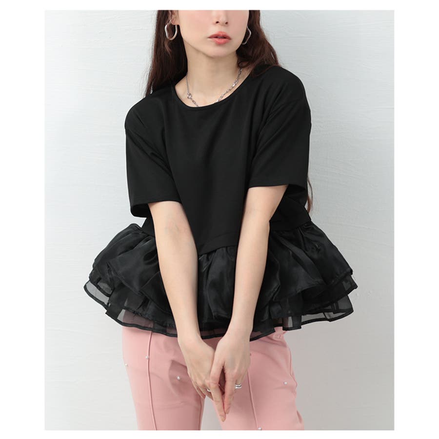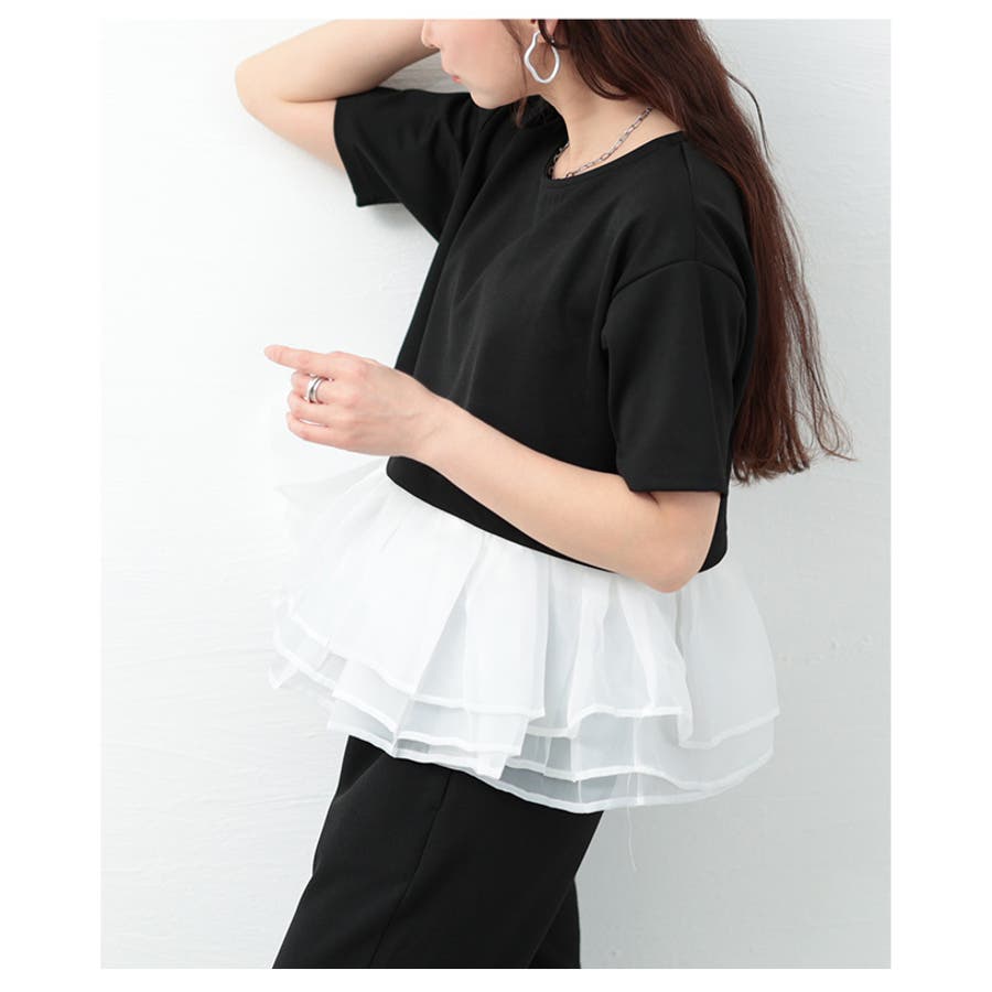 ひとさじの甘さを加えるオーガンジ―フリルドッキングトップス レディース ファッシ…