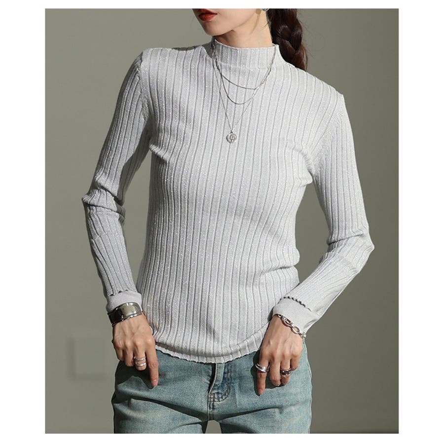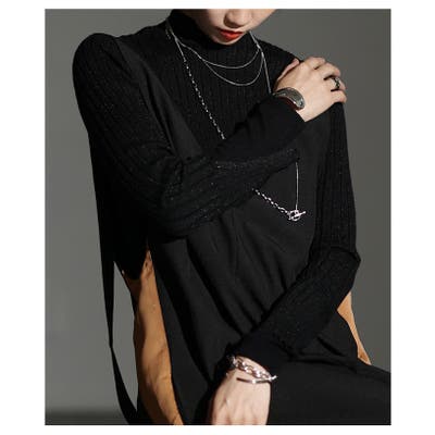 特徴: リブニット ベルスリーブ レイヤード風 ハイネック スリム