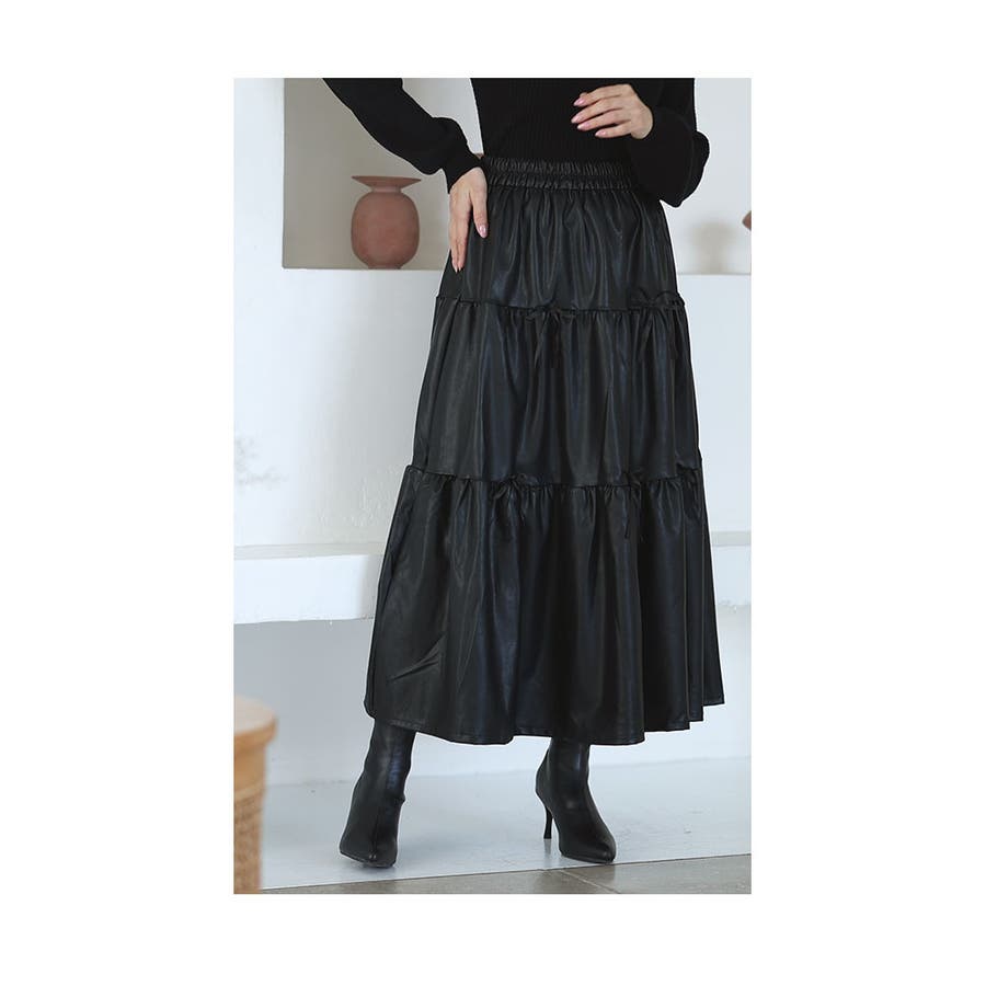 フェイクレザーのリボン付きティアードスカート レディース ファッション