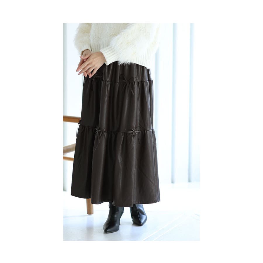 特徴: リボン フェイクレザー ティアード ウエストゴム