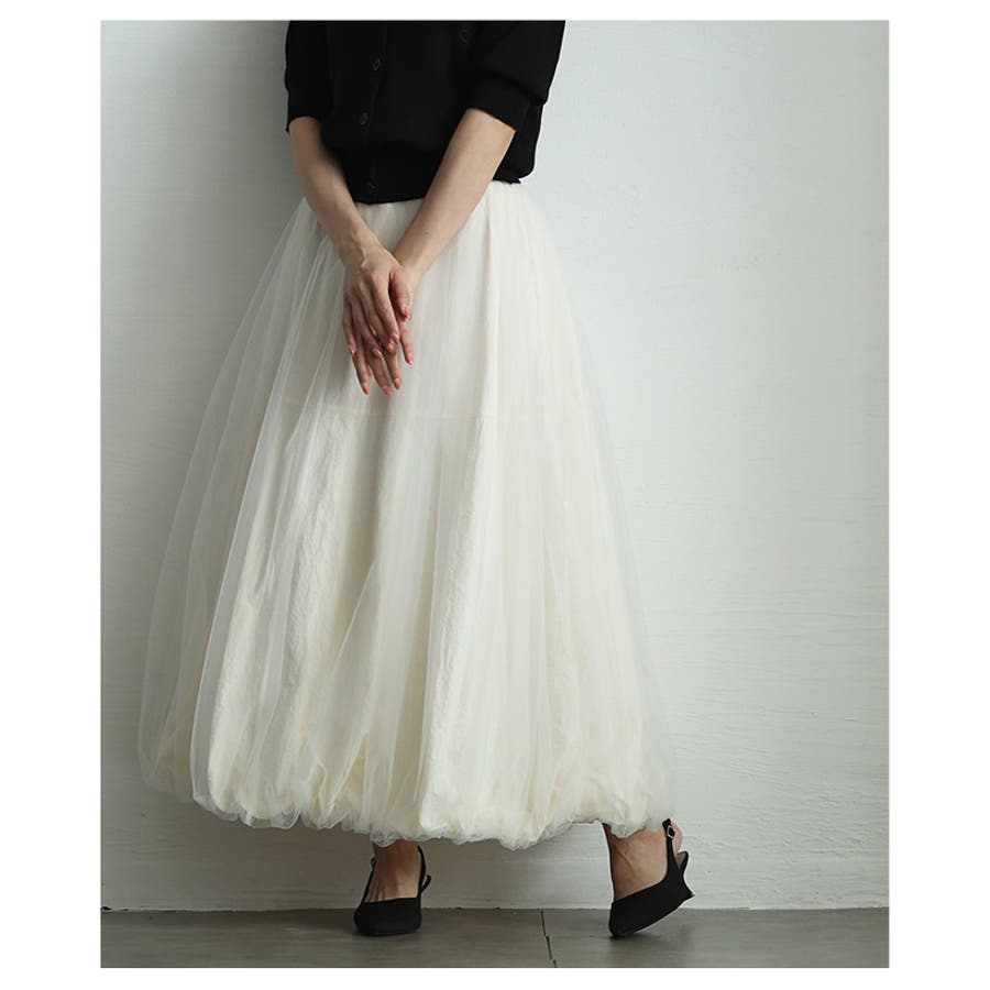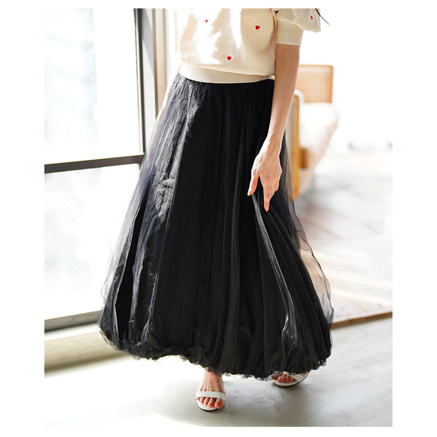 美しいチュールベールに包まれたバルーンロングスカート レディース ファッション