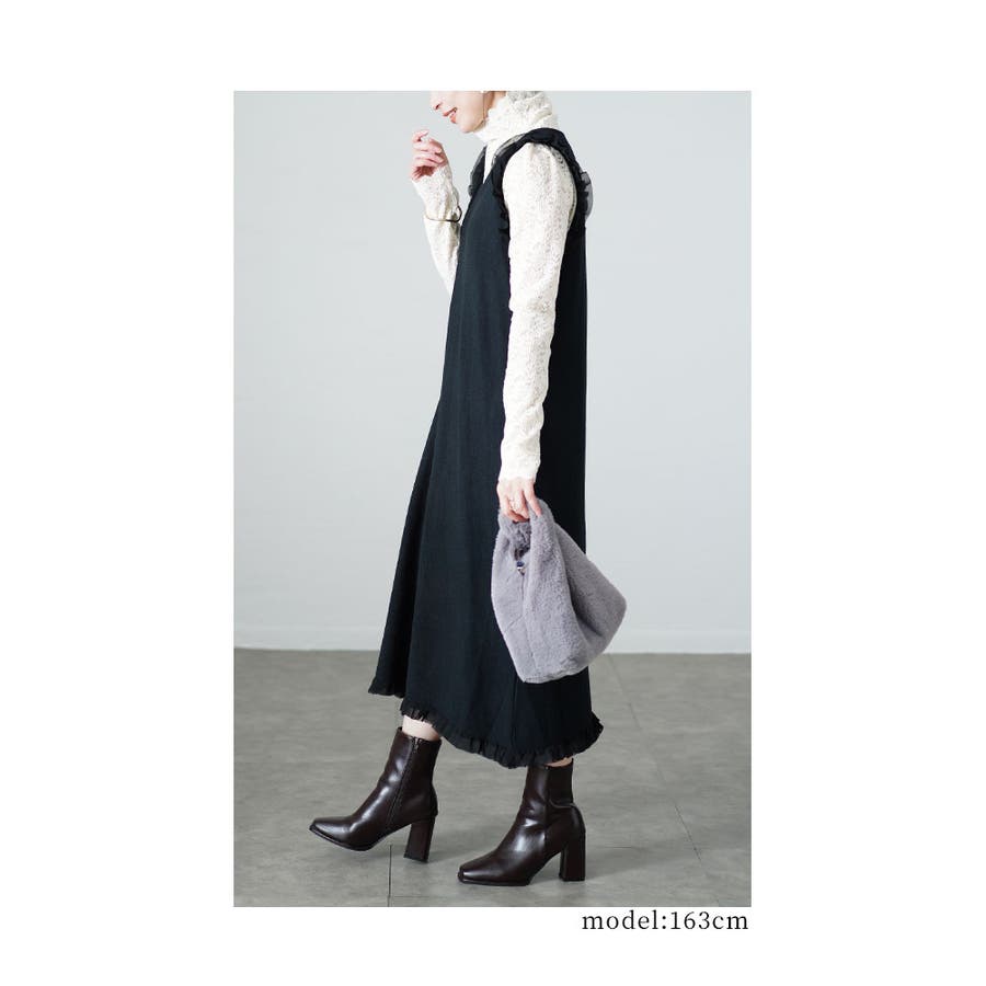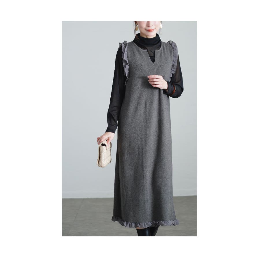 肩と裾に施されたフリルが大人可愛いアクセントになったデザイン。