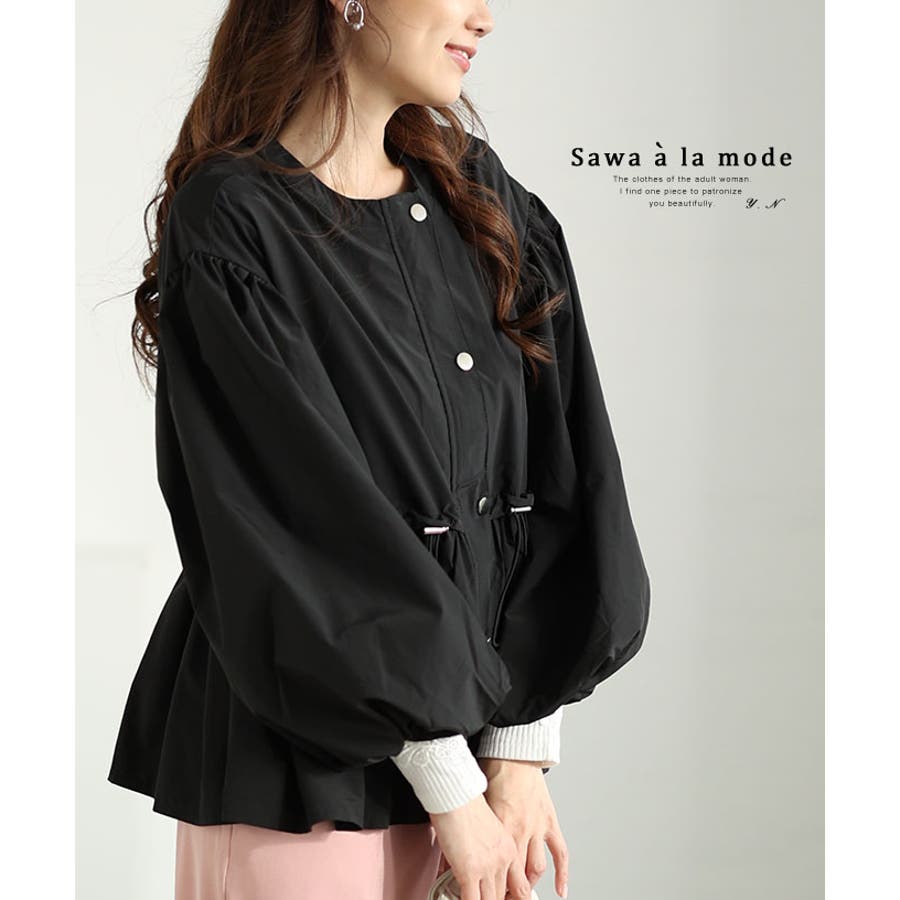 特徴: パフスリーブ ペプラム フレア ノーカラー ドローコード