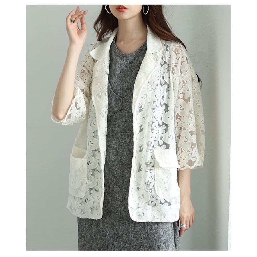 シアー感のあるレース素材で軽やかな印象が漂い、インナーをシフトするだけでロングシーズン楽しめます。後ろ丈が長めに設定され、ヒップラインまで体型カバーを叶え、ヘルシーな肌見せは大人世代にもぴったり。ワンツーコーデやワンピースに重ねるだけで、格上げスタイルに仕上がるレースジャケットで、季節の着こなしを盛り上げましょう。
