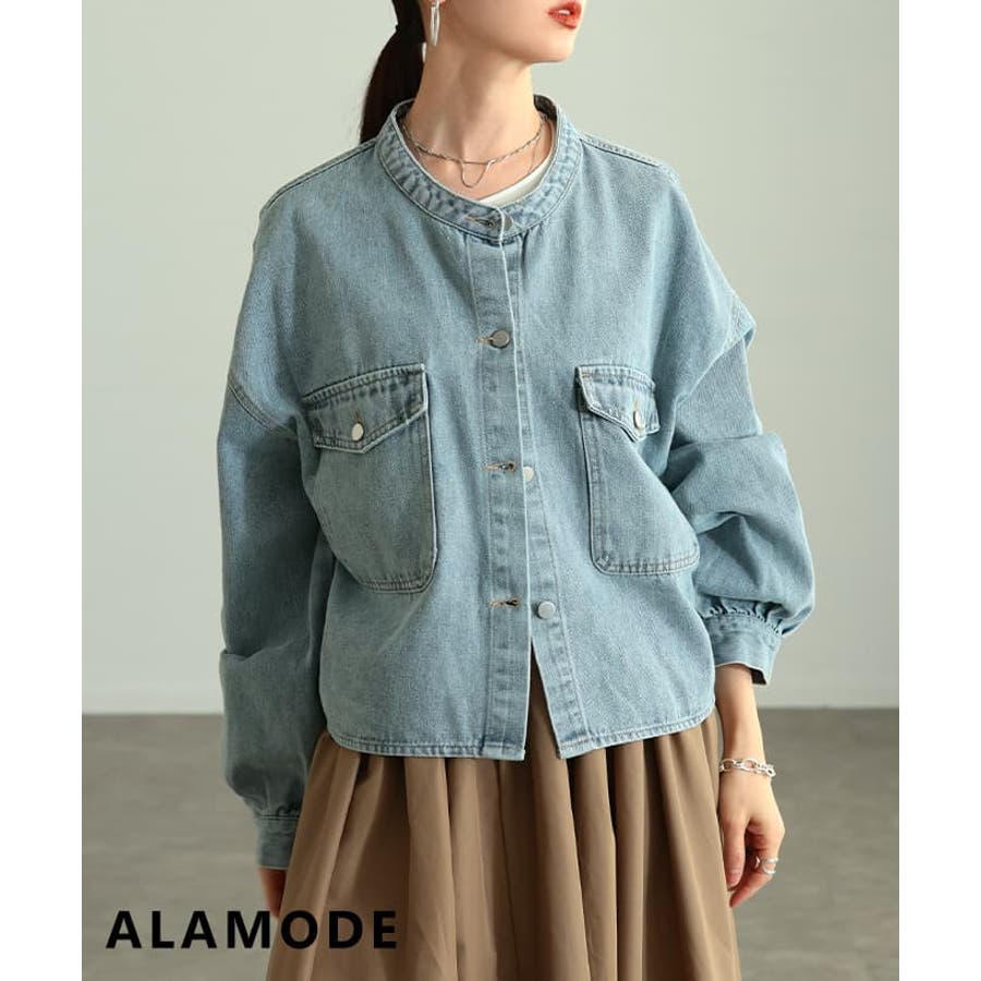 特徴: デニム ギャザー ノーカラー ボリューム袖