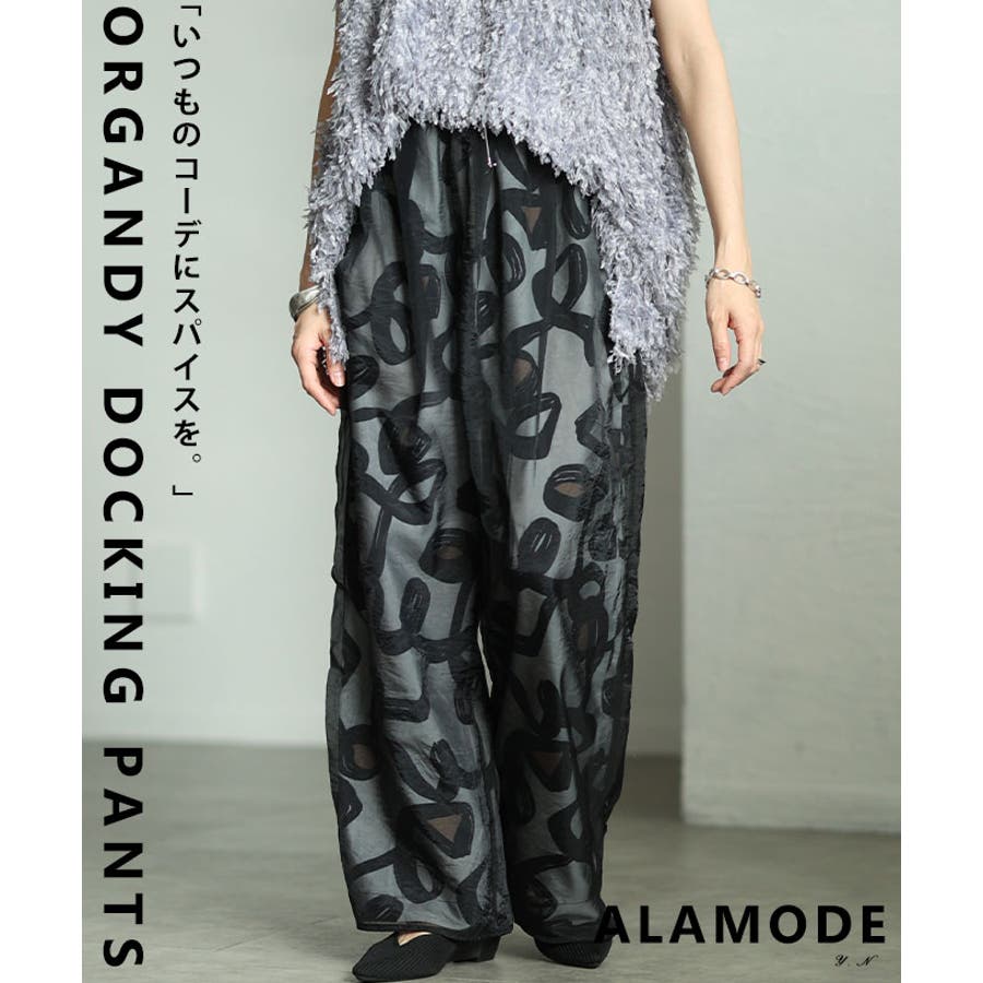モードな遊び心を纏うペイント柄チュールレイヤードワイドパンツ レディース ファッ…