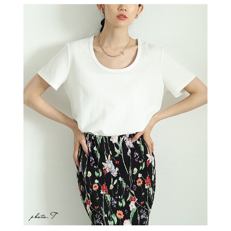 着るだけで美人見えなシルクタッチコットンUネックTシャツ。