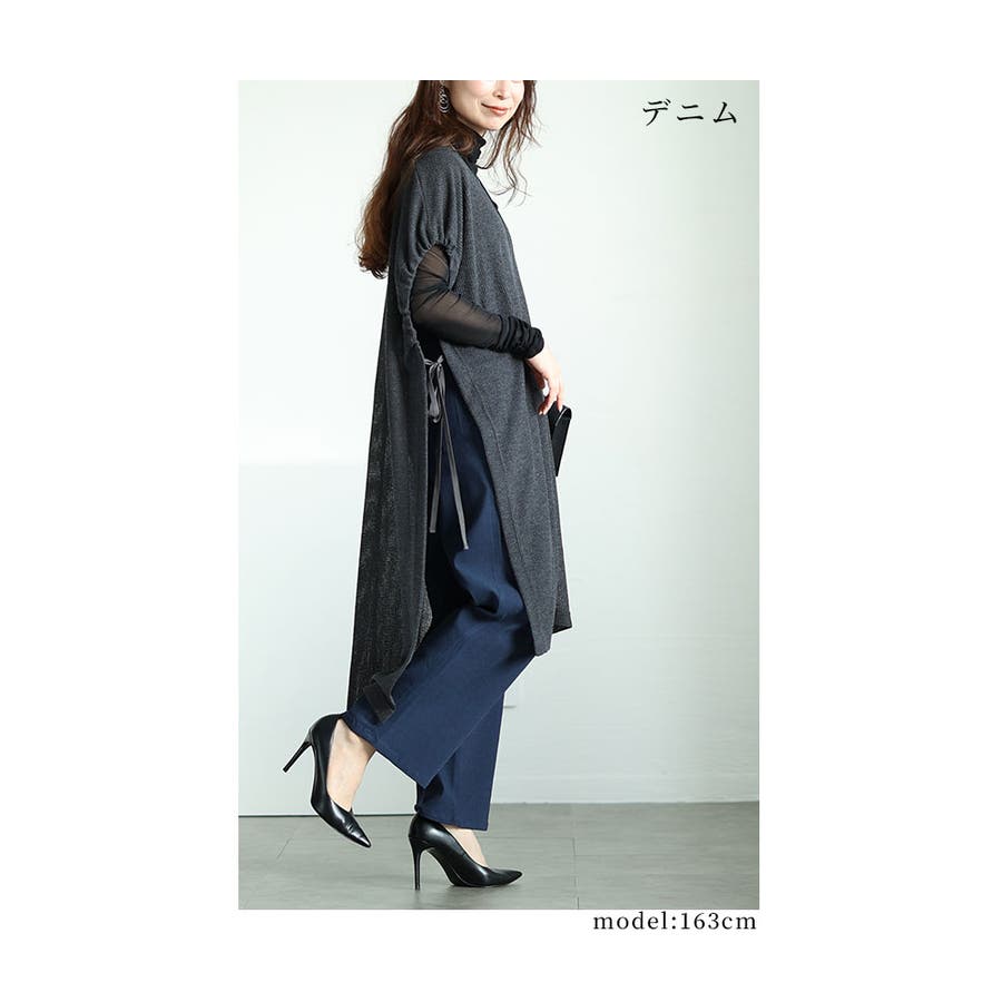トップスを選ばず着こなせるシンプルデザインで、旬スタイルが楽しめます。