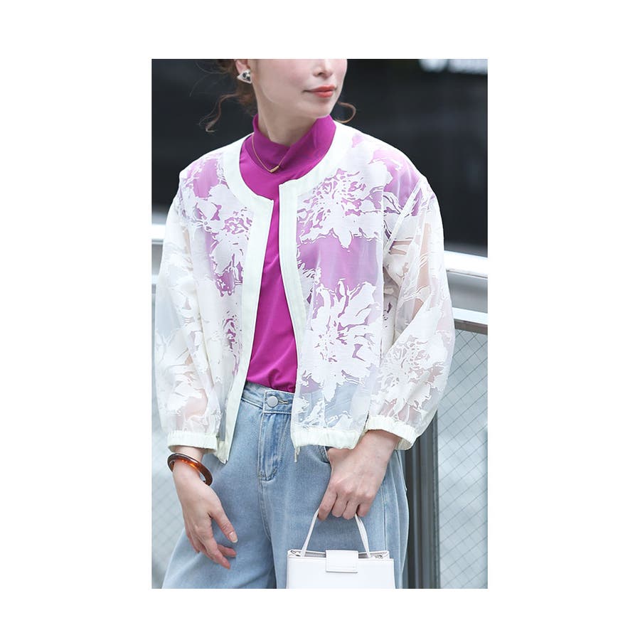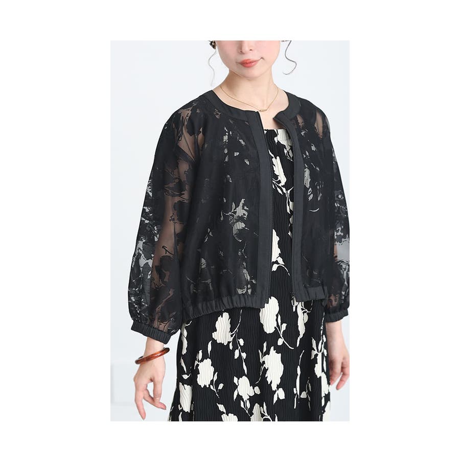 花模様が浮かび上がる上品シアージャケット。