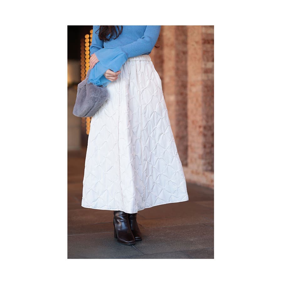 軽いのにしっかり暖かいボール刺繍キルティングスカート。