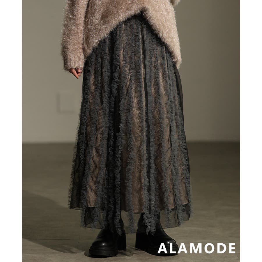 柔らかいチュール生地に縦ラインのフリルを贅沢にあしらったロングスカート。