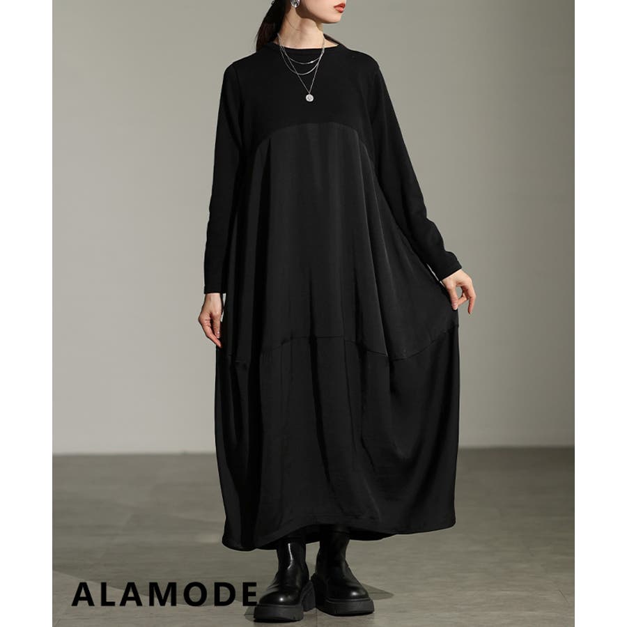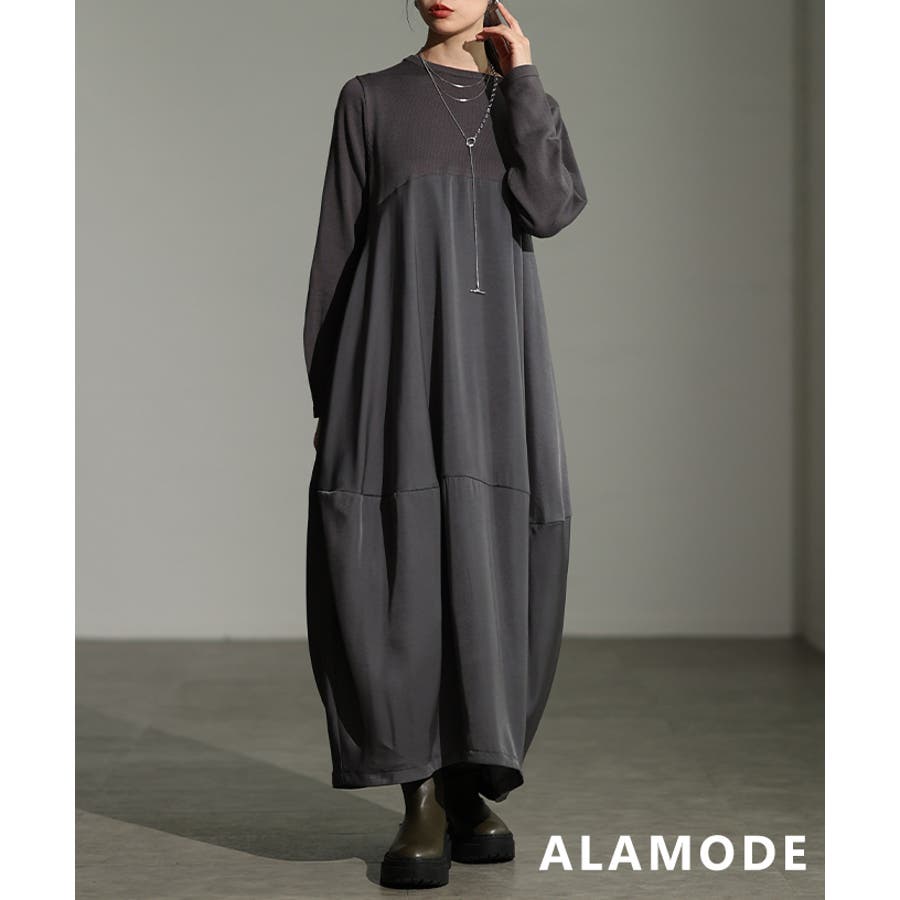 異素材で魅せるコクーンワンピース レディース ワンピース