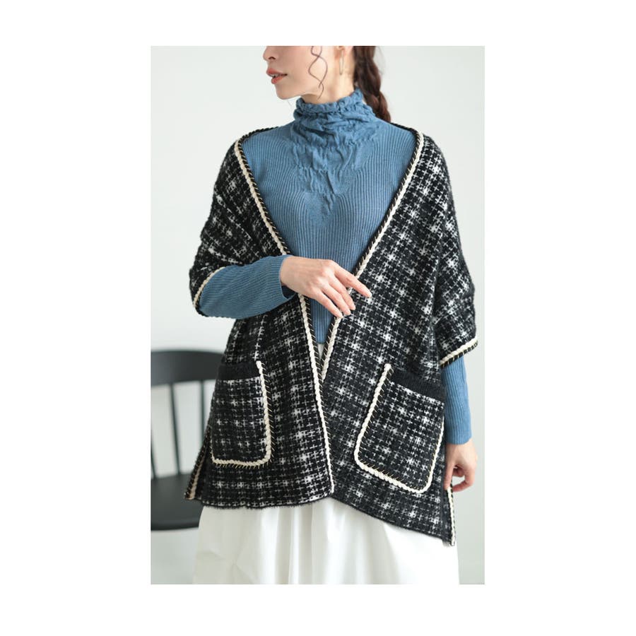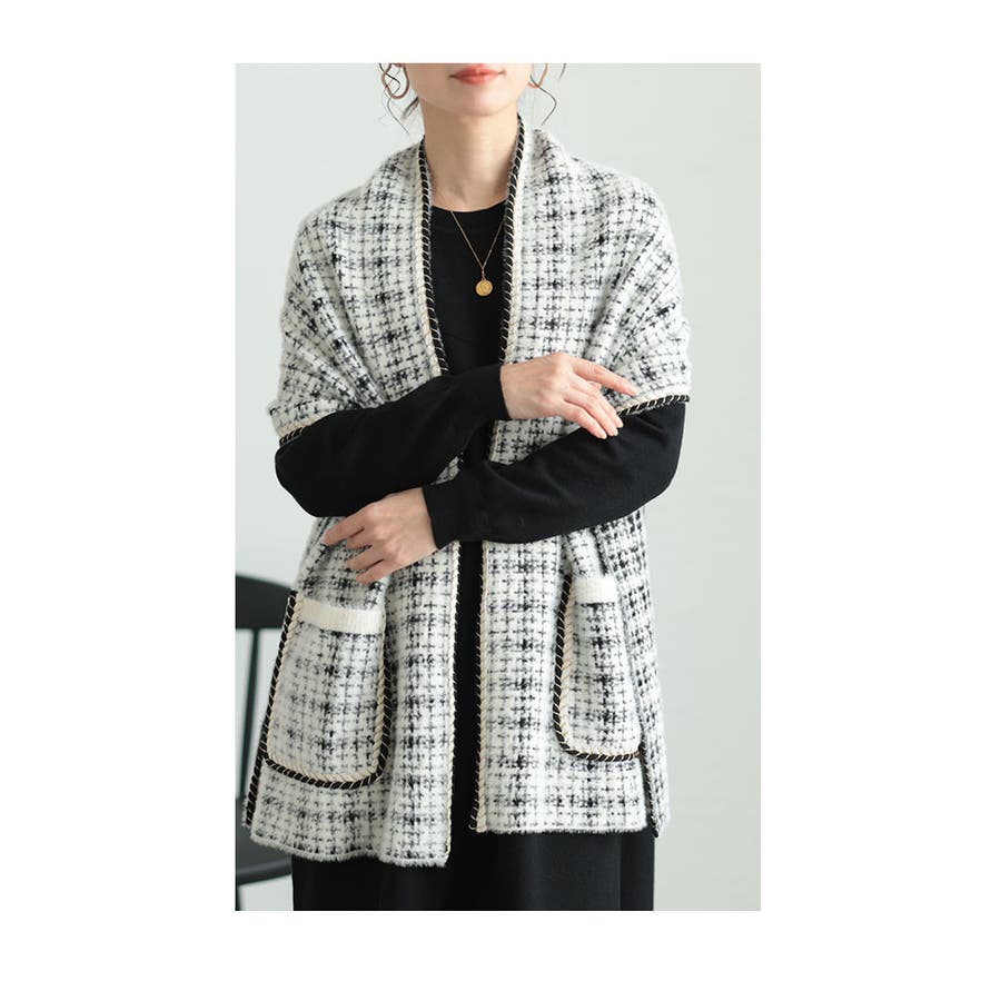 上質な重厚感に包まれるポケット付きツイード調ストール レディース ファッション
