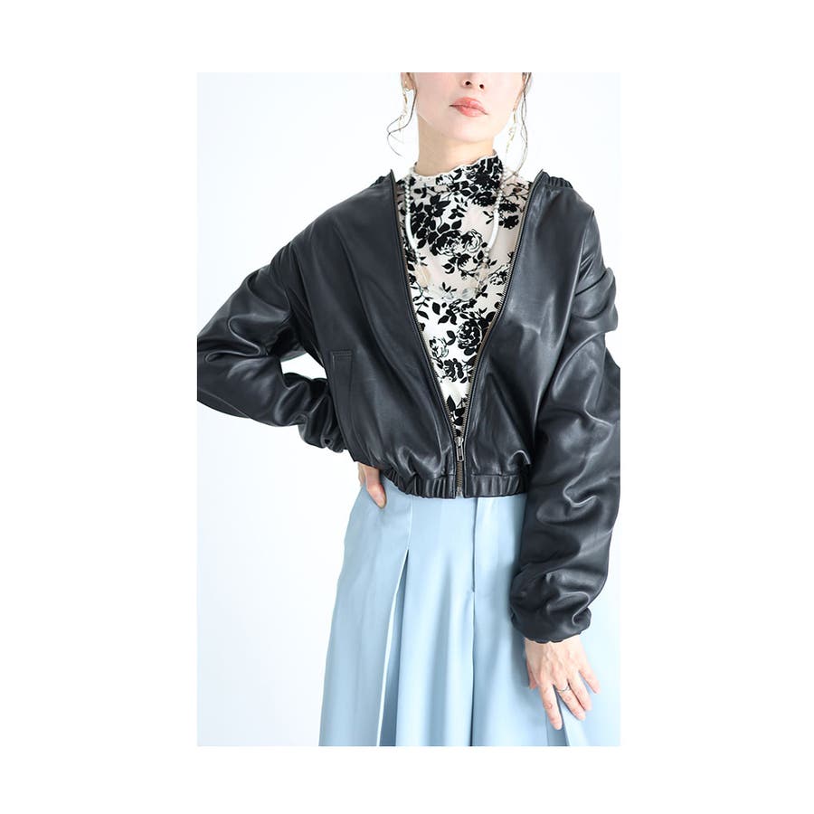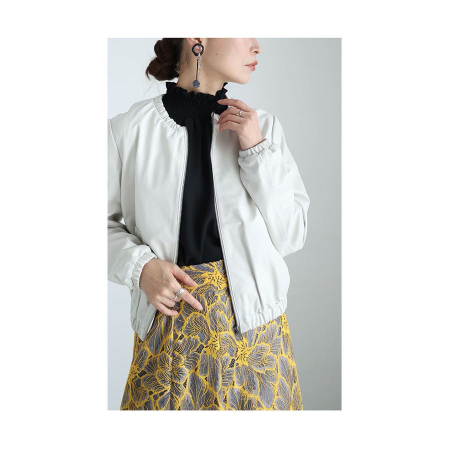 特徴: 本革 ラム革 ノーカラー ジップアップ