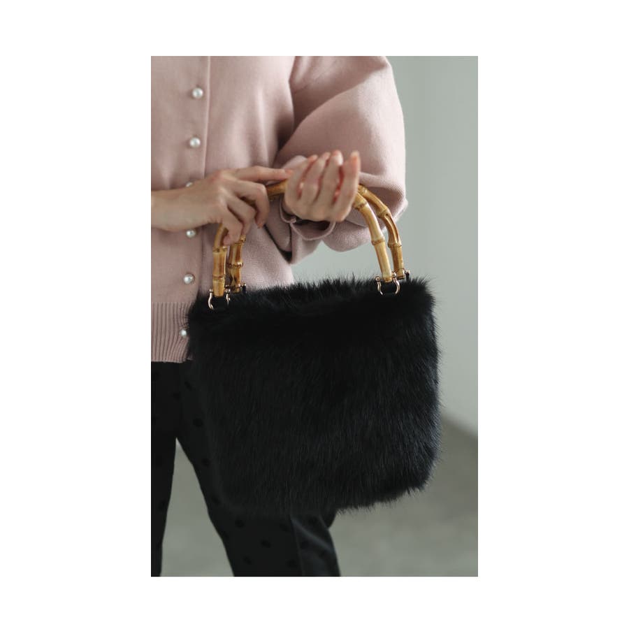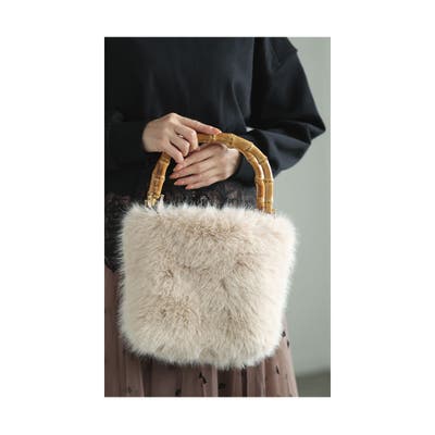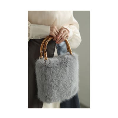 お洒落なバンブーハンドルのエコファーバッグ レディース ファッション