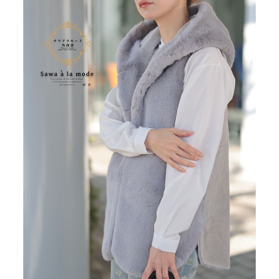 ずっと触れていたいスウェード切替エコファーベスト レディース ファッション